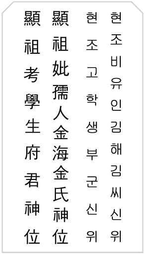 제주의 증조할아버지 高祖考고조고. 신주와 동일한 단어가 있다. 위에 지방을 한글파일로 첨부하니 상황에 맞게 수정해서 사용하시면 됩니다.