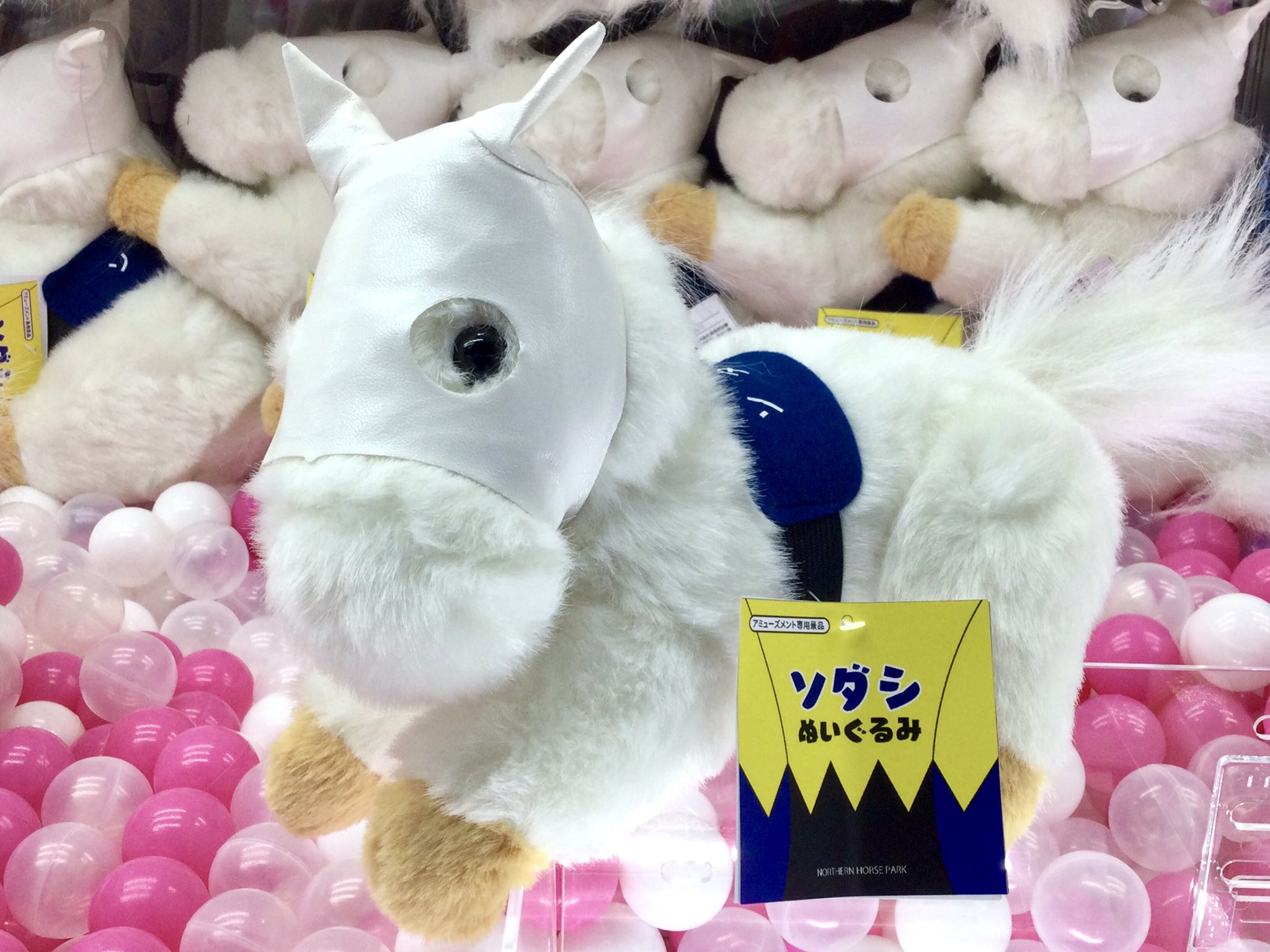 これええんか w いつの間にかゲーセンでソダシのぬいぐるみが出てたんだが 週末は落ち武者