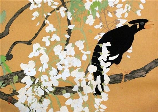 Sold Price Rakusan Tsuchiya 1886 1976 Weeping Cherry And Japanese Bush Warbler Mid Spring And Plovers Two Works September 6 0117 10 00 Am Edt